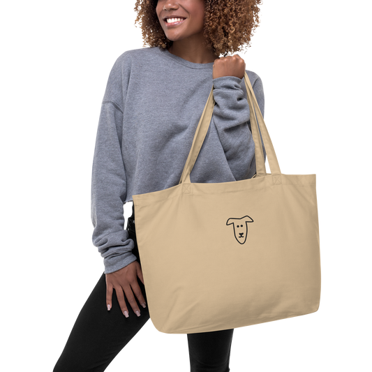 Großer Stoffbeutel Hund beige (personalisierbar) aus Bio-Baumwolle